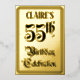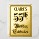 The front of this opulent fifty-fifth birthday celebration/party foil invitation card design features the message “55th Birthday Celebration” in elegant script-style text. It also has a personalized name. The back features personalized details about the event, such as the date, time, place/venue, and any other information that may be important. Ornate, elaborate, customized invitations like these might be used to invite guests to a birthday celebration being held to honor somebody’s fifty-fifth birthday. [~Z0000596]
