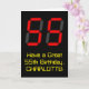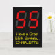 The front of this silly and geeky birthday themed greeting card design features a large number "55" having a red seven segment digital display inspired appearance, along with the message "Have a Great 55th Birthday," and a customizable name, on a black colored background. The inside features a customizable birthday greeting message, or could perhaps be cleared and left blank if a message is to be written by hand instead. A personalized birthday card like this might be a fun way to send birthday wishes to somebody who is celebrating their fifty fifth birthday. [~Z0000386]