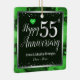 Lovely red Happy 55th Anniversary ornament. Faux foil on 55th and as a border frame. Green oil background created by Valarie Wade. Tiny green heart gem in the upper corner. Names and dates are adjustable.