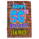 The front of this fun birthday-themed gift bag design features the message “HAPPY 56TH BIRTHDAY,” having a colorful, vibrant, graffiti-inspired appearance, along with an editable recipient name. The background features a pattern inspired by the look of a brick wall. A birthday themed gift bag like this might be a fun way to wrap a gift or present being given to celebrate somebody’s 56th birthday. [~Z0000536]