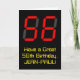 The front of this silly and geeky birthday themed greeting card design features a large number "56" having a red seven segment digital display style appearance, along with the message "Have a Great 56th Birthday," and an editable name, on a black colored background. The inside features a custom birthday greeting message, or could perhaps be cleared and left blank if a message is to be written by hand instead. A customizable birthday card like this might be a fun way to acknowledge somebody’s fifty sixth birthday. [~Z0000386]