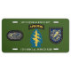 56TH CHEMICAL RECON DET 5TH SPECIAL FORCES GROUP LICENSE PLATE WITH SSI, FLASH/DUI AND JUMP WINGS/OVAL DESIGN.