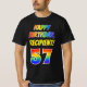 The front of this exciting, fun, and colorful birthday themed shirt design features a large number "57" and the message "HAPPY BIRTHDAY,", both having a rainbow spectrum gradient inspired pattern coloring, along with a bold yellow editable name. Cheerful and bold birthday-themed shirts like this might be fun for the attendees at somebody’s fifty seventh birthday party and celebration to wear. [~Z0000473]