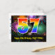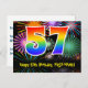 The front of this exciting, colorful, and fun birthday-themed postcard design features a large number "57" with a rainbow spectrum gradient inspired pattern, along with the message "Happy 57th Birthday,", and a personalized recipient name. The front additionally has a colorful and vibrant background pattern inspired by bursting celebratory fireworks. The back features a customized birthday greeting message, or could perhaps be cleared and left blank if a message is to be written by hand instead. A customizable birthday postcard like this might be a fun way to acknowledge somebody’s fifty seventh birthday. Postcards like this might also be used to invite guests to a birthday celebration being held for somebody who is turning 57 years old. [~Z0000446]
