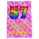 57th Birthday: Fun Pink Hearts Stripes; Rainbow 57 Medium Gift Bag