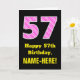 57th Birthday: Pink Stripes and Hearts "57" + Name Card