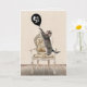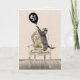 Gray tabby cat reaching for a black balloon on an old-fashioned chair for 57th birthday.