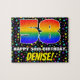 This colorful and eye-catching birthday themed jigsaw puzzle design features a large number “58” having a multicolored rainbow spectrum inspired gradient pattern. It also features the message “HAPPY 58th BIRTHDAY,”, and a personalized recipient name. The background features a joyful, multicolored star shapes pattern. A bold, customizable birthday puzzle like this might be a fun way to send birthday greetings to somebody who is celebrating their fifty-eighth birthday. [~Z0000607]