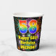 This exciting and joyful birthday-themed paper cup design features a large number “58” having a rainbow spectrum gradient inspired pattern. It also features the message “Happy 58th Birthday,”, and a personalized name. The background features a colorful pattern inspired by the appearance of bursting celebratory fireworks. Vibrant, colorful paper cups like this might be fun to use at a birthday party being held in celebration of somebody’s 58th birthday. [~Z0000539]