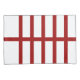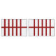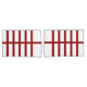 This bold geometric pattern, inspired by a railroad map symbol, features five vertical red lines split in half by a horizontal red line down the center. The red on white pattern has a strong spartan look.