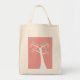 Five adorable blue birds hang out around a white tree against a pink background on this reusable bag! Cute and environmentally friendly!