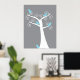 Five adorable blue birds hang out in a white tree against a gray background on this cute poster! This print makes a great addition to any room!