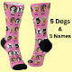 5 Dogs, 5 Names, Dog Photo - Personalized Pink Socks