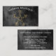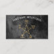 This custom business card features an elemental pentagram design for psychics, wiccan practices, healers and other mystical storefronts. An image of a gold pentagram is pictured on the front, pointing to each of the five elements - earth, fire, water, spirit, and air. A sample psychic medium name is printed above the pentagram symbol. The back of the business card features the location and contact information. The background is a rustic looking, faded black parchment paper design.