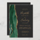 5-Photo Emerald Green Gold Agate Dark Wedding Invitation