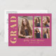 5 Photo Grad Collage Modern Script Pink and Gold Postcard