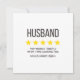 Simple Anniversary or Birthday Day Card for your husband. The design is 5 yellow stars and the funny phrase "Husband - 5 stars. Top-notch! Exactly what I was lookin for. Would marry again." A humorous yet sweet card for your husband on your wedding anniversary or for your husband's birthday, or for any day of the year you want ot show love and appreciation.