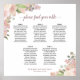 This beautiful 5 table wedding seating chart has space for 50 guests at 5 tables with 10 seats at each table. It features a hand painted watercolor floral design with pink, coral, and mauve colored roses and blossoms, as well as eucalyptus leaves and garden greenery. The elegant script calligraphy title reads please find your table, and there is space for the names of the couple at the bottom. Wonderful way to add rustic elegance to your wedding reception while making it easy for your guests to find their seats.