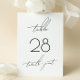 5 x 7 - Black on White Script Stylish Wedding Wedding Table Number - modern and impressive - part of a collection