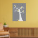 Five adorable yellow birds hang out in a white tree against a gray background on a poster. This print makes a great addition to any room!