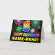 The front of this fun, colorful, and cheerful birthday greeting card design features a large number "5" and the message "HAPPY BIRTHDAY,", both colored with a rainbow spectrum gradient inspired pattern, along with a bold yellow custom recipient name. The front also features a multicolored background pattern inspired by bursting celebratory fireworks. The inside features a customizable birthday greeting message, or could perhaps be cleared and left blank if a message is to be written by hand instead. A cheerful customizable birthday card like this might be a fun way to send a message celebrating somebody’s fifth birthday. [~Z0000471]
