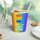 This fun and cheerful birthday themed paper cup design features a large number “5” with a colorful rainbow spectrum inspired gradient pattern, along with the message “HAPPY 5th BIRTHDAY,”, and an editable name. The background also features a vibrant multicolored rainbow spectrum inspired gradient pattern. Birthday themed paper cups like this might be fun to use at a birthday party being held for somebody who is celebrating their fifth birthday. [~Z0000576]