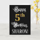 The front of this luxurious and lavish birthday-themed greeting card design features the message “Happy 5th Birthday,”, and a personalized recipient name. Part of the message is in a fancy script-style text. The large number “5th” features a faux/imitation gold-inspired look pattern. The background is colored black. The inside has a customizable birthday greeting message, or could perhaps be cleared and left blank if a message is to be written by hand instead. An opulent, personalized birthday greeting card like this might be a respectable way to deliver a birthday greeting message to somebody who is celebrating their fifth birthday. [~Z0000559]