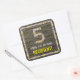 5th Birthday: Floral Number, Faux Wood Look, Name Square Sticker