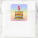 5th Birthday: Fun Cake and Candle + Custom Name Square Sticker