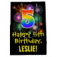 This fun, exciting, and colorful birthday themed gift bag design features a large number "5" with a rainbow spectrum gradient inspired pattern, along with the message "Happy 5th Birthday,", and a customizable recipient name. It also features a colorful background pattern inspired by the look of bursting celebratory fireworks. A birthday themed gift bag like this might be a fun way to wrap a gift or present being given to celebrate somebody’s 5th birthday. [~Z0000509]
