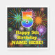 This joyful and fun birthday paper napkin design features a large number “5” having a colorful rainbow spectrum gradient inspired pattern. It also features the message “Happy 5th Birthday,”, and an editable name. The background features an exciting and colorful pattern inspired by the appearance of bursting celebratory fireworks. Paper napkins like this might be used when celebrating somebody’s 5th birthday. [~Z0000574]