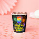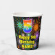 This fun and cheerful birthday paper cup design features a large number “5” having a rainbow spectrum gradient inspired pattern. It also features the message “Happy 5th Birthday,”, and an editable name. The background features a colorful pattern inspired by the look of bursting celebratory fireworks. Vibrant, colorful paper cups like this might be fun to use at a birthday party being held to celebrate somebody’s 5th birthday. [~Z0000539]