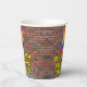 This fun and vibrant urban street art and graffiti themed birthday paper cup design features a large number “5” with a colorful rainbow spectrum gradient inspired pattern, along with the message “Happy 5th Birthday,”, and a customizable name. The background has a brick wall pattern. Colorful, vibrant paper cups like this might be fun to have at a birthday party being held to celebrate somebody’s fifth birthday. [~Z0000543]