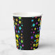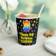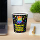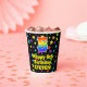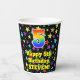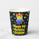 This exciting and fun birthday themed paper cup design features a large number “5” with a rainbow spectrum gradient inspired pattern, along with the message “Happy 5th Birthday,”, and an editable name. The background features a vibrant and colorful pattern featuring many star shapes with different colors and sizes. Vibrant, colorful paper cups like this might be fun to have at a birthday celebration/party being held to celebrate somebody’s fifth birthday. [~Z0000540]