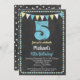5th Birthday Invitation Blue Yellow Chalkboard