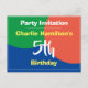 invitation for a special birthday party with name, and number of years. Party invitation postcard for a 5 year old