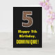 5th Birthday: Name, Faux Wood Grain Pattern "5" Card