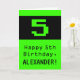 This nerdy and geeky birthday greeting card design features a large green 8-bit computing style number "5" on the front. It also features the birthday greeting message "Happy 5th Birthday,", and a name that can be customized. The inside features a custom birthday greeting message, or could perhaps be cleared and left blank if a message is to be written by hand instead. A nerdy customizable birthday card like this might be a fun way to send a message in celebration of somebody’s fifth birthday. [~Z0000430]