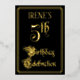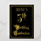 The front of this luxurious, fancy, foil fifth birthday celebration/party invitation design features the message “5th Birthday Celebration” in opulent script-style text. It also features an editable name. The background of the front is colored black by default (although it can be customized to a different color). The back features personalized details about the event, such as the date, time, location, and any other information that may be relevant. Opulent, ornate, editable invitations like these might be used to invite guests to a birthday celebration/party being held to celebrate somebody’s 5th birthday. [~Z0000589]