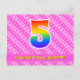 5th Birthday: Pink Stripes & Hearts, Rainbow 5 Postcard