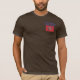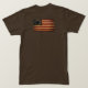 This T shirt supports the famed 5th New York Regiment during the American Revolution. The brown of this shirt mirrors the brown of the 5th's Regimental coats. The Blue script on the front represents the regimental's blue facings and cuffs. The NY flag is under the script on the left side and a weathered Betsy Ross flag is sported on the back. MADE IN USA.