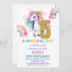 5th Rainbow Unicorn Birthday Invitations Glitter