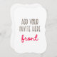 Customize your invitation in Corjl. After you are done editing, download the front and back of your invitation in JPG or PDF format and make sure to select the "SHOW BLEED" option. Upload your design here by clicking on the blue "Personalize" button. Please contact us if you need assistance or have any questions.