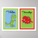This adorable Dinosaurs Wall Art prints are perfect for any child's room or baby's nursery. There is four different styles. This is sized to have each print individually cut out and separated at a 5x7 size each and is printed on Ultra-heavyweight (120 lb) card stock paper and printed with a unique process that imparts a rich depth of imagery. Simply order, cut to separate into four prints, frame all four prints, hang, and enjoy in any child's room or baby's nursery!