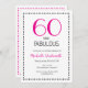 60 and Fabulous Charming Sixtieth Birthday Invitation. Classic and charming pink and black invitation you can personalize and send out for your fiftieth birthday party celebration. The words "60 and Fabulous" are set using popular typography.