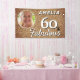 60 and Fabulous Gold Glitter 60th Birthday Photo Banner. 60th birthday celebration backdrop. Personalize with name and photo.