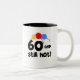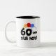 Primary colors balloons and black text that reads "60 and still hot!" on 60th birthday T-shirts, mugs, buttons, cards, and other birthday gear!