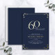This beautiful invitation features hand lettered calligraphy artfully presenting 'sixty' in luxurious hand lettering against a blue background, adorned with delicate swirls in the corners top and bottom in real gold foil, along with the name and the number 60. This image will have all your guests excitedly anticipating your fabulous sixtieth festivities!