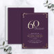 This beautiful invitation features hand lettered calligraphy artfully presenting 'sixty' in luxurious hand lettering against a purple background, adorned with delicate swirls in the corners top and bottom in real gold foil, along with the name and the number 60. This image will have all your guests excitedly anticipating your fabulous sixtieth festivities!