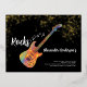 60 Rocks with this cool rock music themed 60th birthday party modern invitation. Rock and roll colorful electric guitar with gold glitter and musical note illustrations with personalized gold modern calligraphy typography on a black background. This easy to use template creates the perfect personalized invitation to celebrate sixty in rockstar style. Perfect if you have a live band or are a guitarist, musician and music lover. Unique musical instrument original artwork by artist Catherine Sweetman